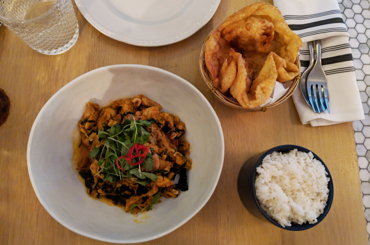 The final dish was kua hang gai, which was a braised chicken stir fry. No complaints here — the chicken was super tender, and the flavours were well-rounded and satisfying. We got this with one order of jasmine rice and another of roti. The deep-fried roti was crispy and tasty, but it was closer to fry bread than standard roti. I liked it, but a more traditional preparation would have been preferable.