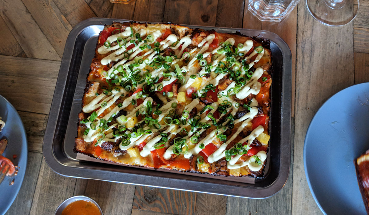 Take, for example, the Electric Avenue: “jerk chicken, fresh pineapple, curried lime aioli, green onion, Mama Lil’s Peppers, Diablo’s Fuego hot sauce.” It’s sweet and spicy, with flavours that are about as far from a traditional pizza as you can get. But it’s so good.