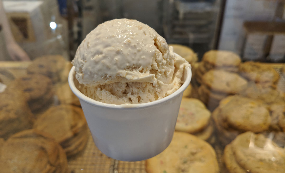I normally don’t even like fruity ice cream all that much, but this one is something special. It has such an amazing roasty pineapple flavour; it’s obvious that the fruit has been intensely caramelized. If you’re looking for something light and tart and refreshing, look elsewhere. This has a really deep, rich flavour that’s perfectly balanced by the creamy ice cream. It’s perfect. It’s honestly one of the best scoops I’ve ever had.