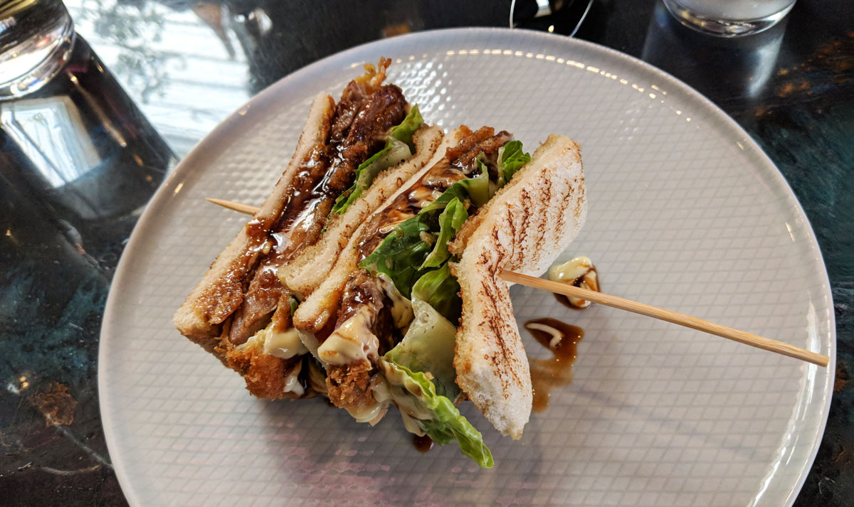 Next up was the katsu sando, which is a fried pork sandwich topped with a generous amount of mayo and tangy tonkatsu sauce, with some romaine lettuce for added crunch and freshness. It’s a solid sandwich, though the pork was overcooked (I had a hard time even biting through it in parts).