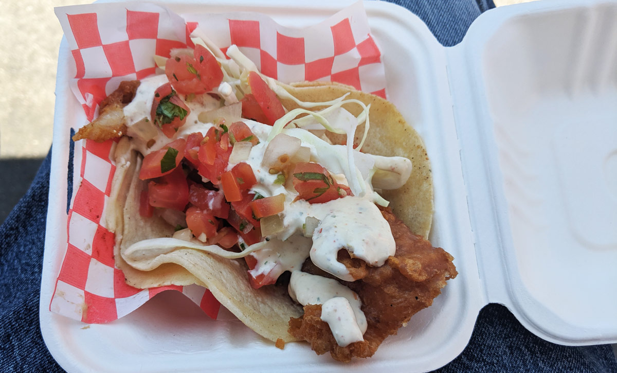 The toppings are great — the cabbage and the pico de gallo add some nice freshness and crunch (not to mention an acidity that helps cut through the fried fish), and the creamy sauce brings a nice garlicky bite.