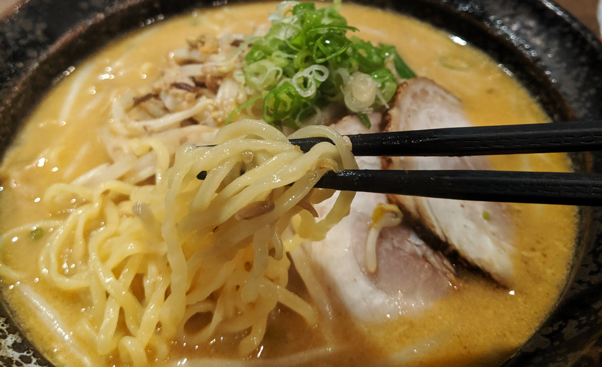 It’s quite tasty. The tonkotsu broth has a vibrant flavour that’s a bit one-note in its salty/savoury intensity, but still quite satisfying. It’s not the best bowl of ramen I’ve ever had, but even average ramen is better than most other dishes.