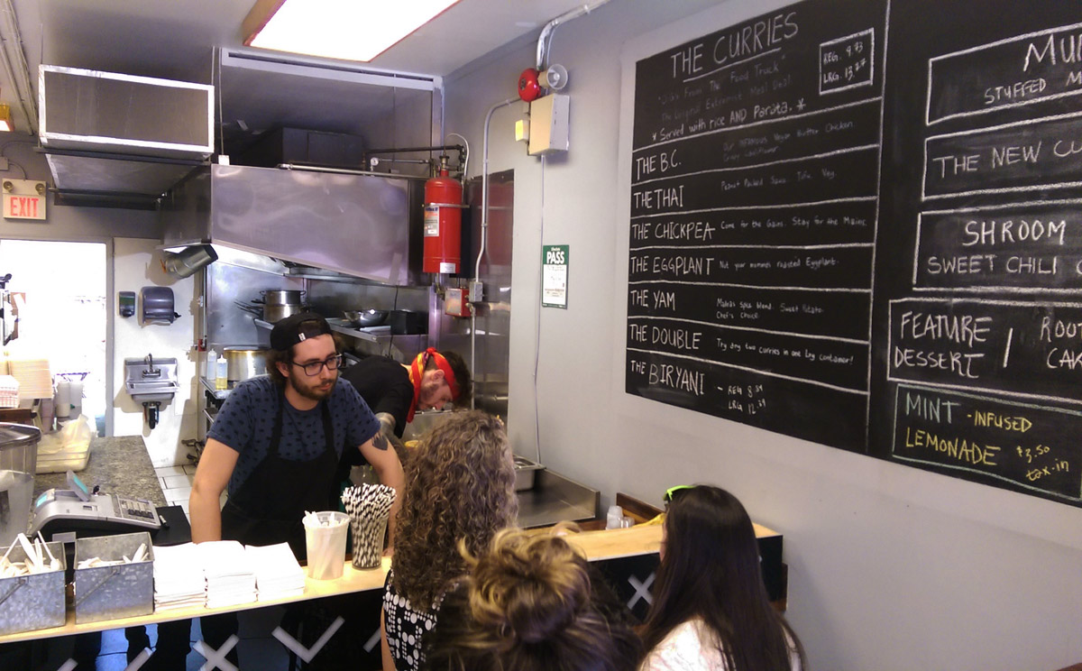 Mostly, they serve a variety of vegan curries that come with rice and paratha roti. One of those curries is the aforementioned butter-and-chickenless butter chicken, which subs in fried cauliflower for chicken.