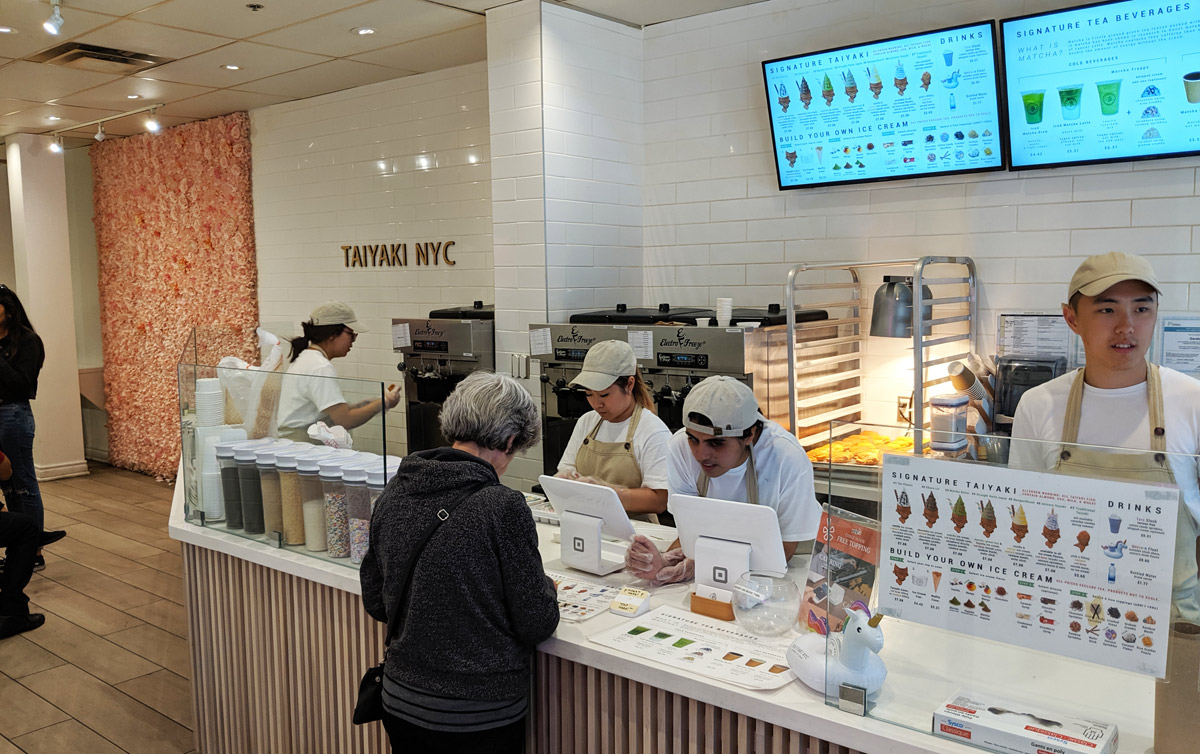 Taiyaki NYC is basically the same concept as Sukoi Desserts, in which a taiyaki (a Japanese waffle-like dessert in the shape of a fish) is filled with ice cream and other toppings.