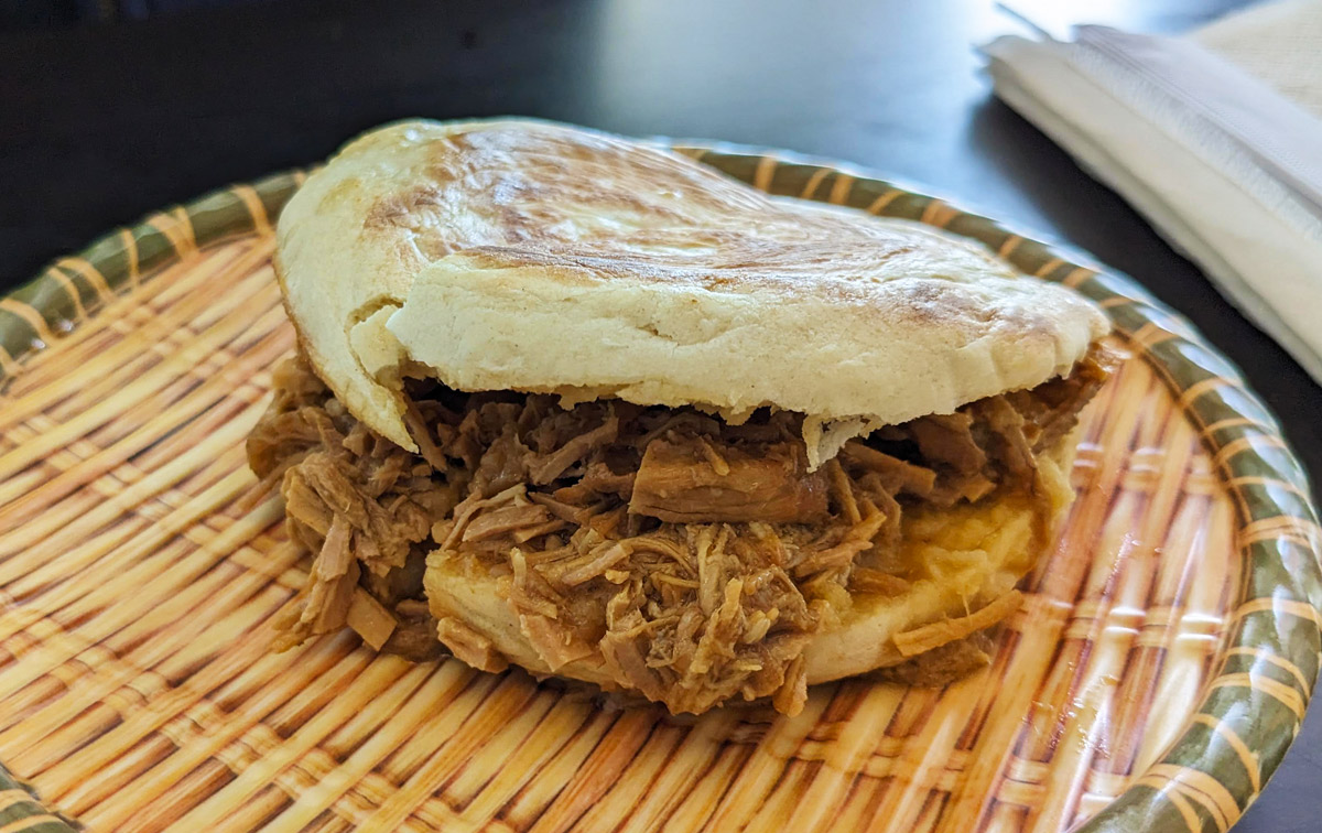 I tried a couple of things mentioned in that article.  First up was the pork rougamo, a simple dish consisting entirely of stewed pork on a chewy flatbread.  This was a tasty if unspectacular sandwich that’s much improved by adding a healthy dollop from the jar of smoky chili oil on the table.