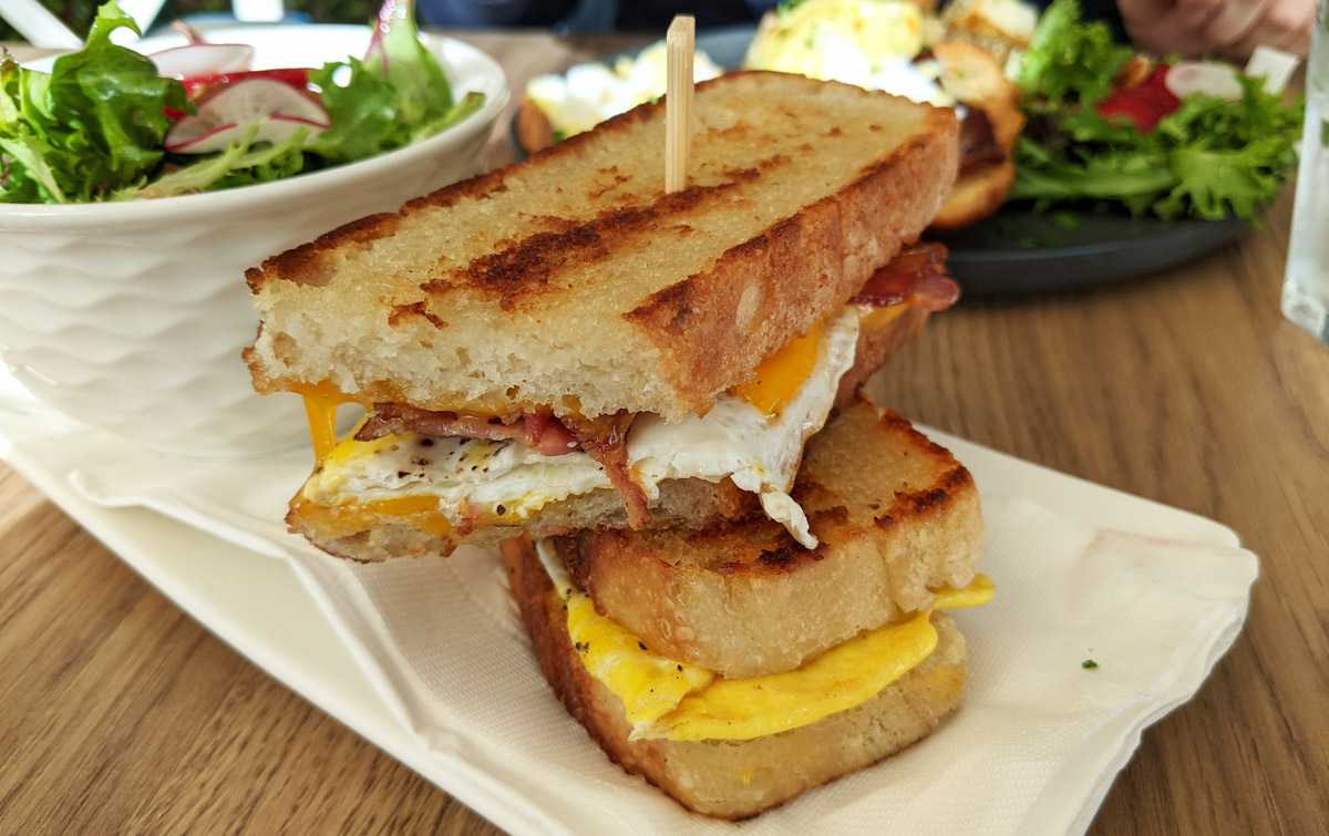 DeCourses Cafe is a charming little brunch spot that does quite well (it was packed when I visited, and had a steady stream of people picking up take-out orders).  The menu mostly consists of brunch standbys; I went with the breakfast sandwich (“white artisan bread, bacon, fried egg, cheese blend”).  Nothing about it particularly stood out, and it really needed something with some zippiness to cut through the richness of the egg, bacon, and cheese, but it was a solid breakfast sandwich.  I enjoyed it.