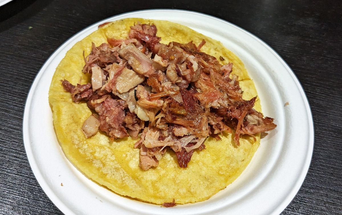I tried a couple of things.  I wanted to try at least one taco, and their menu is extensive, with almost a dozen choices.  I went with the carnitas, which comes with a very generous amount of ultra-tender pork on a double corn tortilla.
