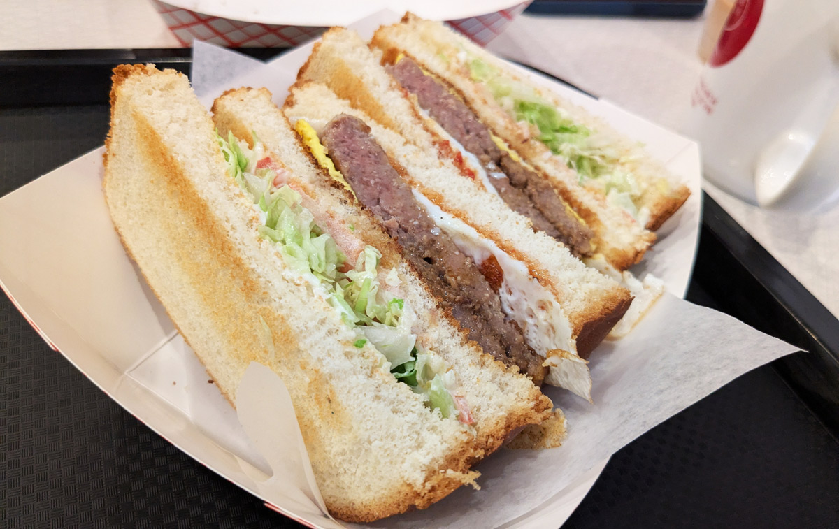 I tried a couple of sandwiches at Breakfast ING, a small Malaysian restaurant inside a bubble tea joint: the house special (“pork loin marinated with house special recipe, fried egg, cabbage, and peanut butter”) and Malaysian street style (“4oz ground beef with a taste of M’sian spice, tomato, fried egg, lettuce and sweet & spicy sauce”). Neither sandwich particularly blew me away (the third slice of bread feels superfluous in both, and only serves to dry out the sandwich), but they were both pretty tasty. The fact that they were nine bucks each for a couple of reasonably hefty sandwiches certainly doesn’t hurt.