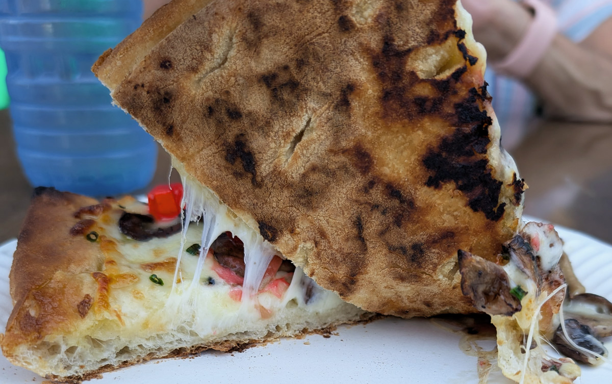 I stuck with the pizza, and tried a slice of the King Fungi: “Cremini Mushrooms, Beech Mushrooms, Mozzarella, Sauteed Onions, Chives, Truffle Oil and Tangy Chilli Jelly.”