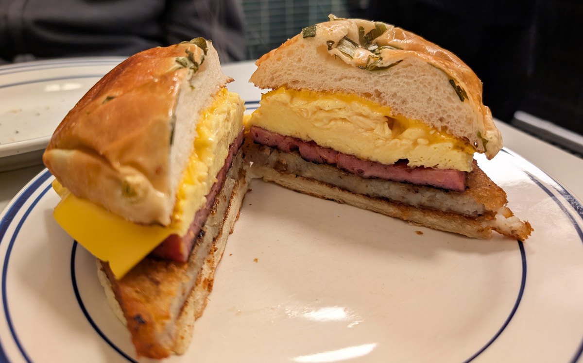 It’s in the style of an old-school diner, with the menu mostly consisting of brunch and diner standbys (with the occasional item having a bit of an Asian twist).