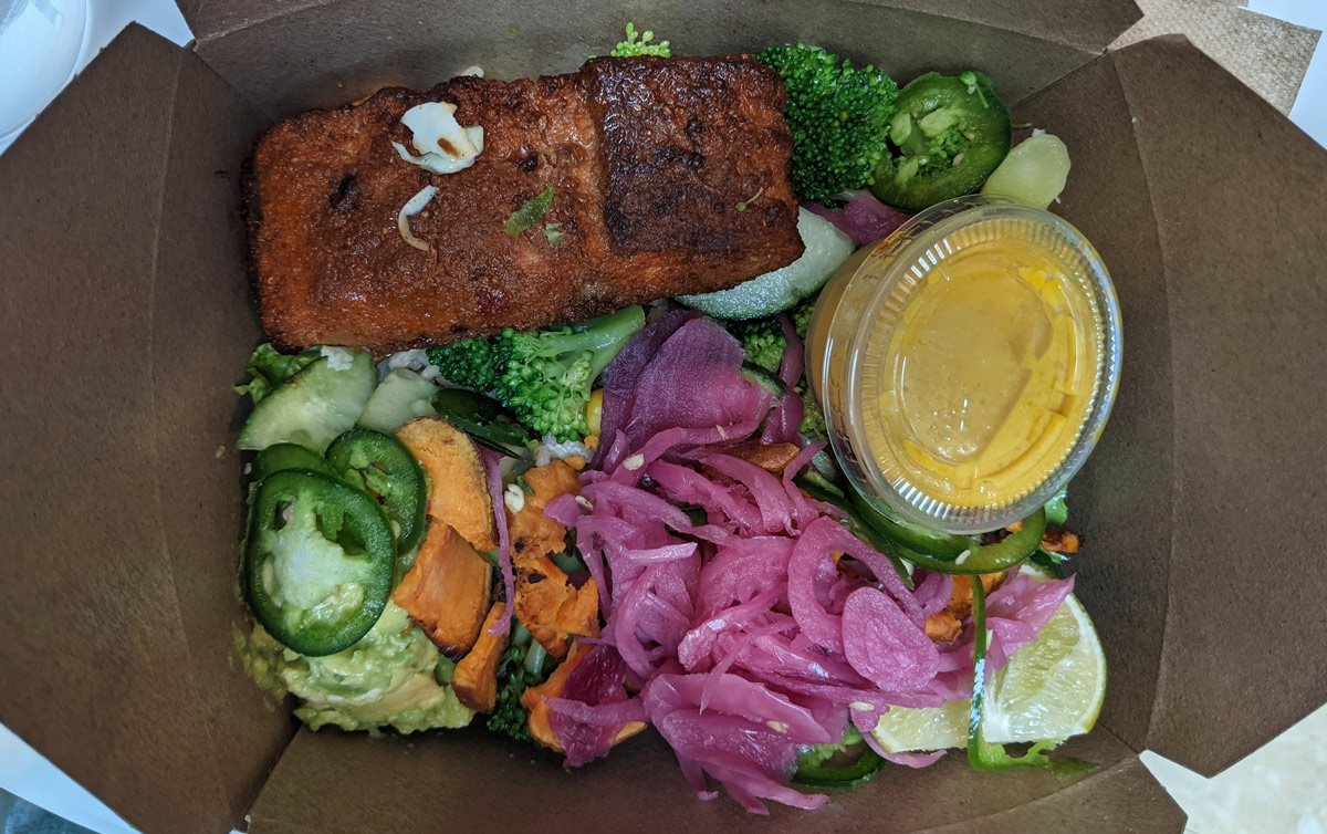 I ordered the mini size, which — true to its name — comes in a comically tiny container. It’s packed with stuff, though, so it’s enough for lunch if you want something that isn’t too heavy.