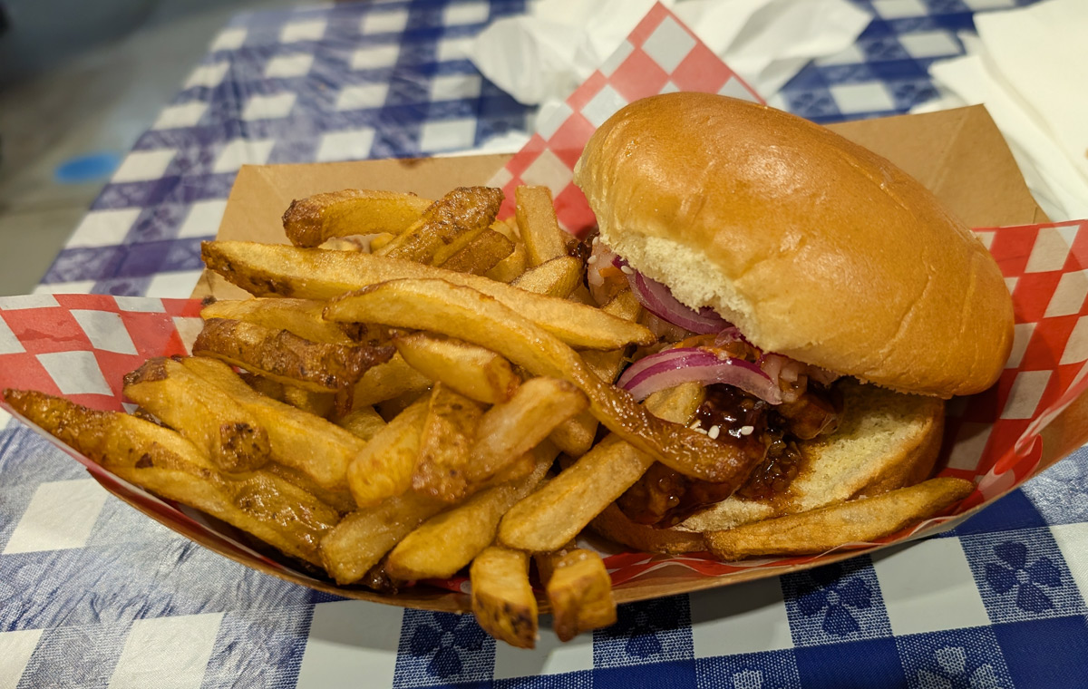 The chicken in the sandwich was pretty skimpy (it maybe filled half of the bun), but the chicken that was there was crispy, juicy, and covered in the usual Korean fried chicken sauce, which is always satisfying. The fries were a bit undercooked, however.