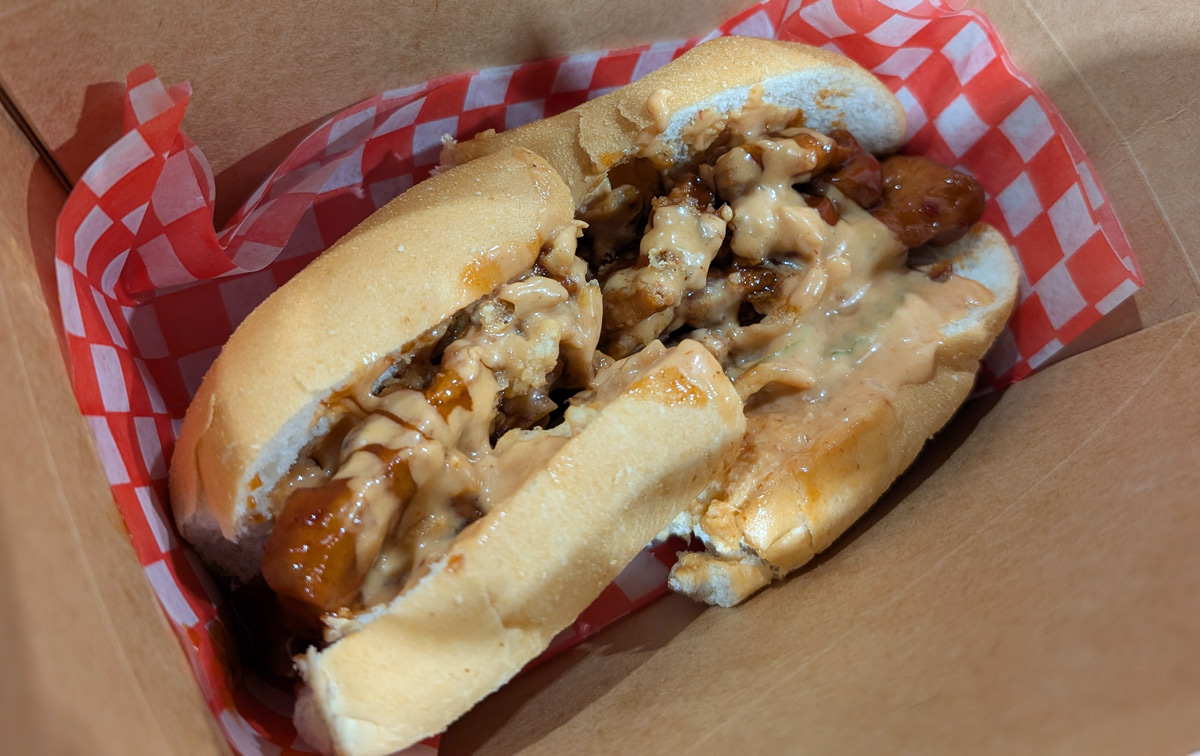 Here’s a head-scratcher: the rib sandwich that seemed like a sure bet was a dud, and the chicken-nugget-stuffed cookie that should have been gross was… actually kind of good? This seems like it should be horrible, but it’s tasty for the same reasons that chicken and waffles are tasty — it has a very similar flavour, but in a convenient hand-held package. And the salty chicken nugget helps to balance out the sweetness of the cookie itself (which is always a bit more pronounced than I’d like at Craig’s Cookies). I was shocked by how much I liked this.