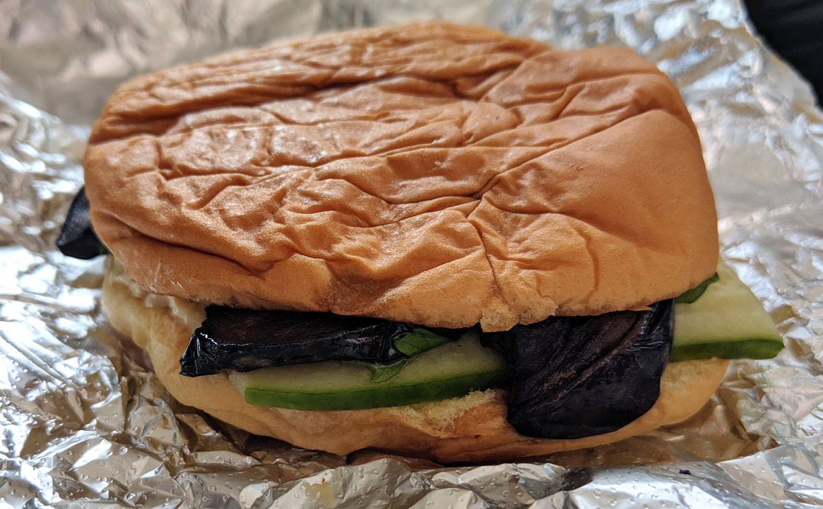 There’s certainly nothing wrong with it; the egg salad is nice and creamy, as is the meaty eggplant. The cucumber adds a bit of crunch, though some additional texture would be nice.