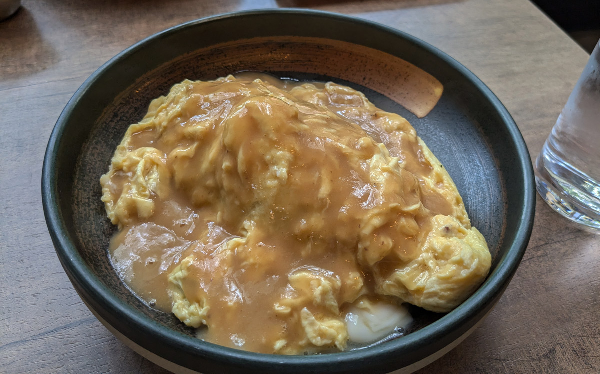 It’s extremely tasty. The flavours here are definitely reminiscent of what you’d find in a standard bowl of ramen, with a really addictive savoury punch and a nice kick of spiciness. And the waiter was definitely right about the onsen egg; its silky texture means that it blends right in with the noodles and the sauce, giving everything an extra richness.