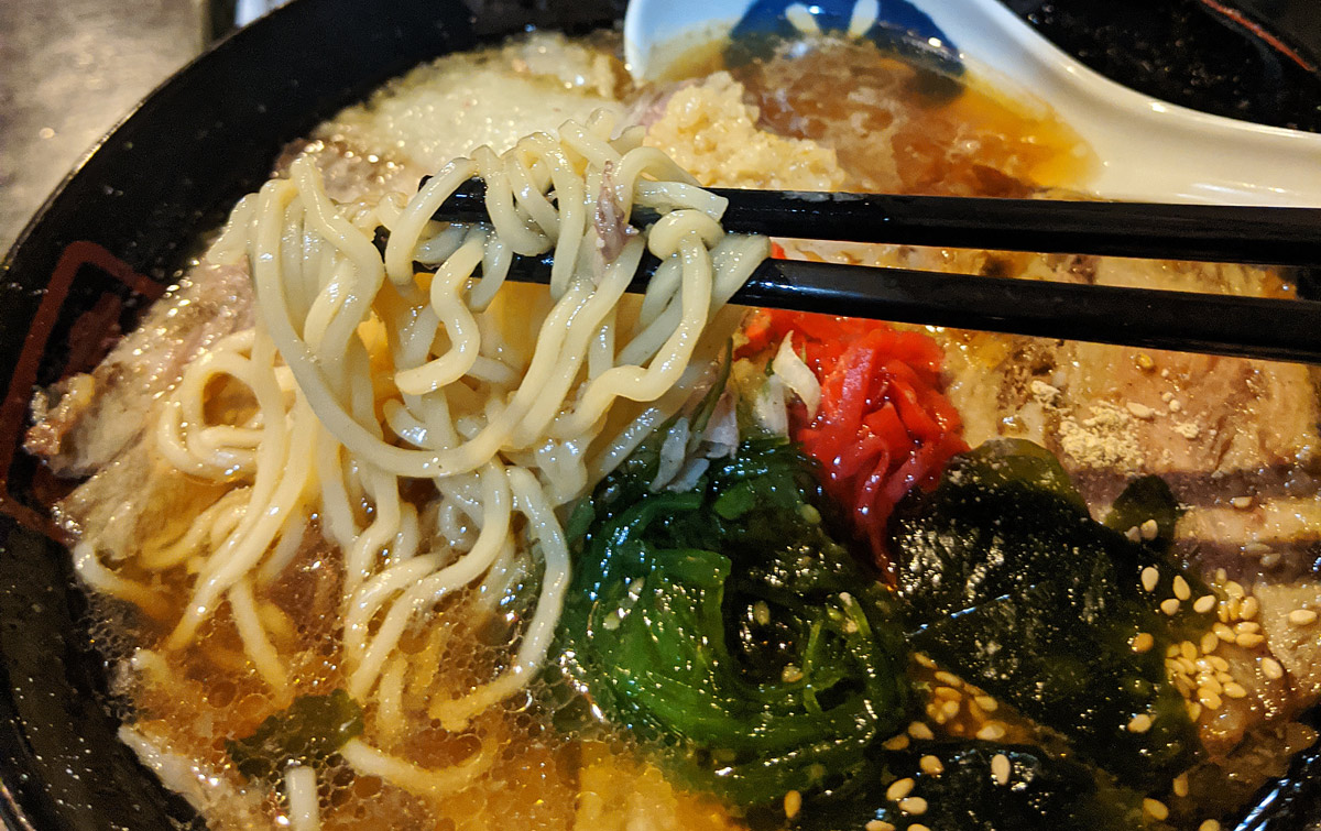 The many toppings — things like garlic, green onion, and pickled ginger — only amp up the already delightful flavour. It’s fantastic.