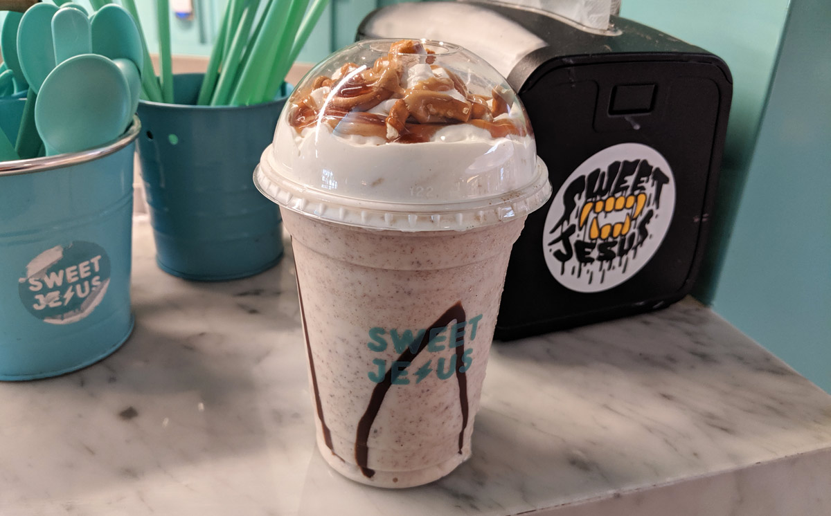And hey, what do you know — this was pretty great, too. In particular, the pronounced black sesame flavour actually works really well in a milkshake, which was nice and creamy without being overly thick.