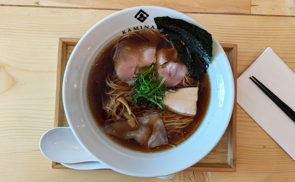 Kaminari Ramen Bar actually has a few types of ramen on the menu: clear Tokyo-style, creamy, “duck umami,” vegan, and a soupless yuzu ramen. The waiter said they don’t really have a specialty, so I went with the clear Tokyo-style.