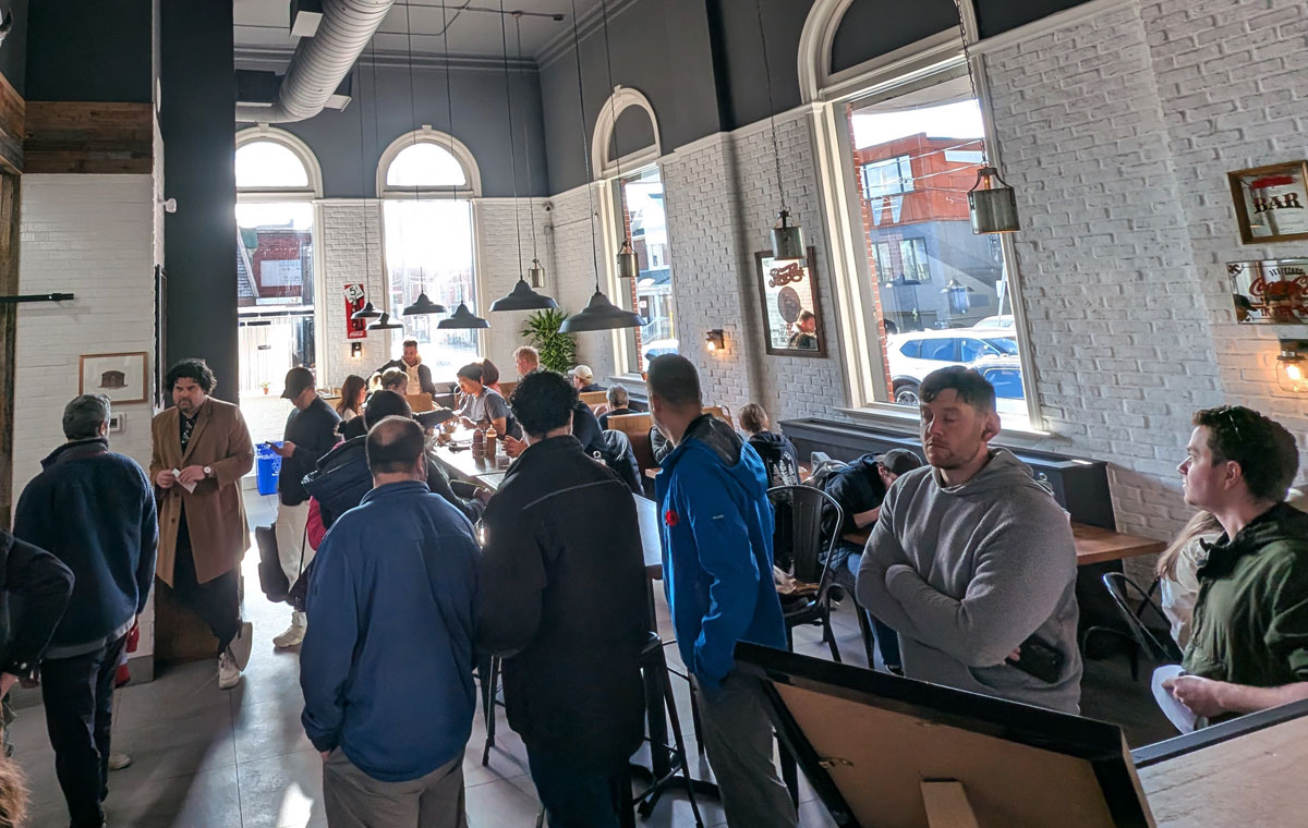 I sort of figured things would have died down by now, but when I showed up just before the place opened at 11:30 on a Saturday, there was already a line waiting to get in. It took about half an hour before I was sitting in front of my food, and the line was even longer by the time I left. So yeah: popular place. Be prepared to wait a bit.