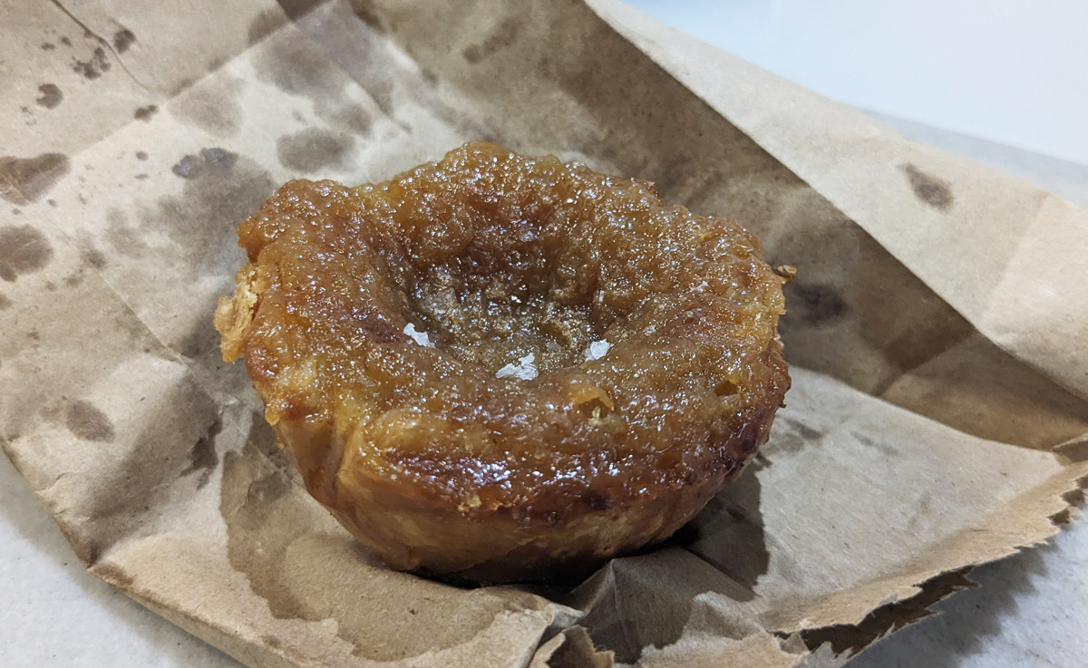 The butter tart was interesting; it was kind of like a hybrid between a standard butter tart and a Portuguese custard tart, with a flaky crust and a filling that was less sweet and more custardy than the norm. It was absolutely delicious, though the crust was a bit soggy despite it still being warm from the oven when it was served to me (the woman behind the counter advised that it might be too fresh to sample immediately; I waited about an hour to eat it. It’s possible it steamed in the bag?).