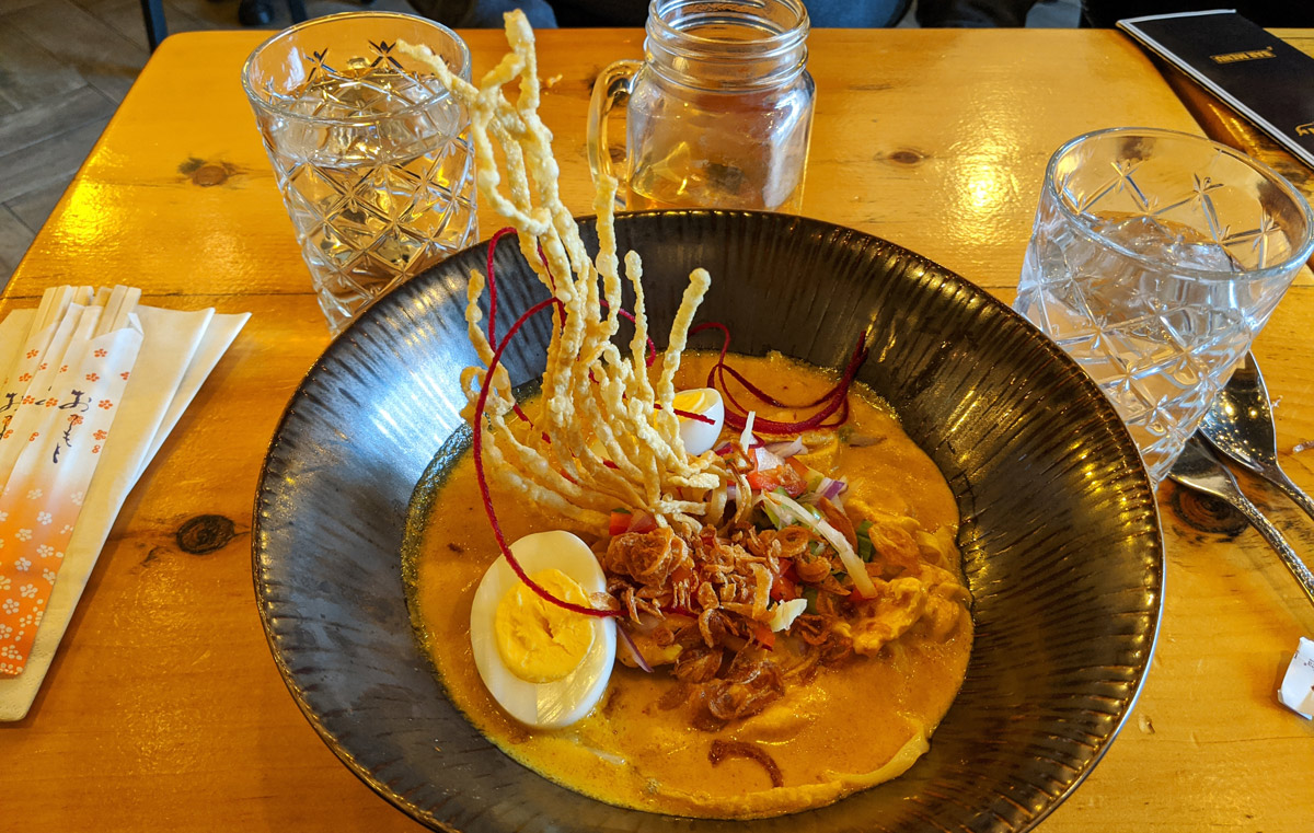 Kumain Kitchen is a “Filipino inspired pop-up” that was in the pop-up space in the Food District at Square One last year (yeah, I have a bit of a backlog). I tried the chicken inasal (“grilled lemongrass chicken served with garlic rice and cucumber salad”) and mostly, it was quite tasty. The chicken was slightly on the dry side, but it was so well seasoned and absolutely crammed with vibrant flavours that this wasn’t a big deal. I really enjoyed it. But I guess they ran out of garlic rice, because it came with plain old rice instead, which was a shame. As for the cucumber salad, it was actually just undressed cucumbers, radishes and tomatoes, along with pickled onion. I actually Googled this to see if that’s just a Filipino thing, but nope — Filipino cucumber and tomato salad is called ensaladang pipino, and it’s definitely supposed to be dressed. Still, that chicken was delicious enough to make up for everything else.