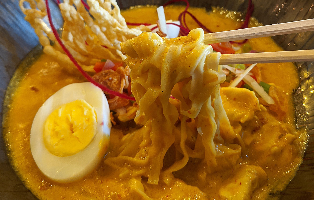 Speaking of restaurants with (relatively) cheap eats that are popular with students… Salad King. This is a Toronto institution (it’s been around since 1981) that I’ve somehow never tried. I got the lime leaf chicken (“Chicken breast slices, snap peas, red pepper, lime leaf, & carrot in a spicy chili sauce with Thai herbs”) and it was perfectly fine. The chicken was a bit dry, but otherwise it was flavourful and satisfying. I’m not exactly going to be dreaming about the place, but I can see why it’s so popular. They are also, famously, not kidding around with the spice here, and yeah. I chose 10 out of 20 on their spice-scale, and it was thoroughly fiery.