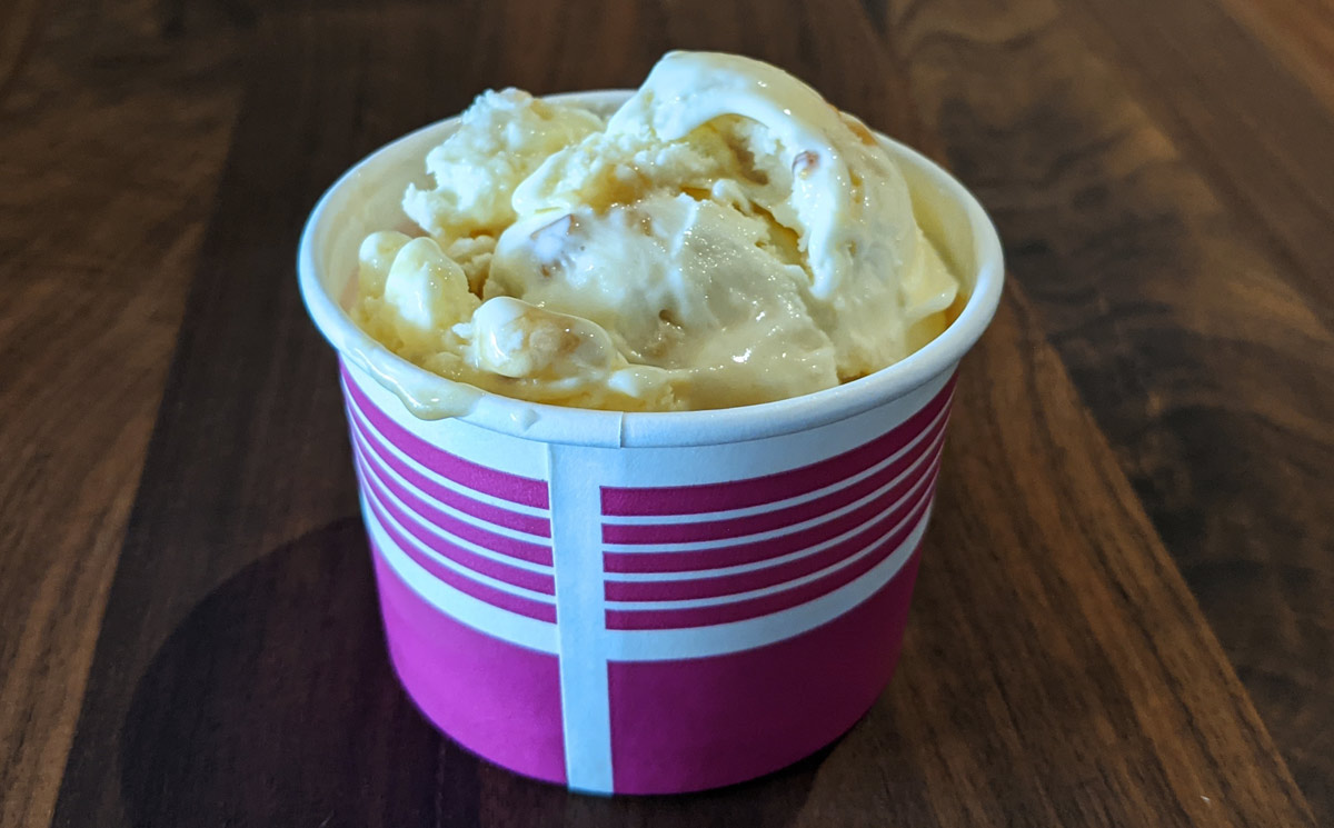Do I need to describe this? If you’ve had Biscoff cookies and you’ve had vanilla soft serve, then there are no surprises for you here. It’s crushed up Biscoff cookies in soft serve. It tastes exactly what you think that’s going to taste like, which is to say: quite delicious! I’m a big fan of Biscoff’s distinct spiced caramel flavour, so yeah, I enjoyed this.