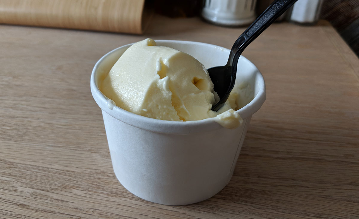 It’s good. It’s not quite as tasty as basically any frozen custard I’ve had in the States, but it’s legit. It’s got a pronounced custardy flavour and a satisfyingly silky texture. It could be creamier, and eating it gets a bit one-note sweet after a while, but all things considered, I enjoyed it.